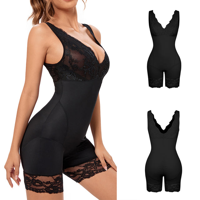 Power Lace V-Neck Tummy & Thigh Control Bodysuit